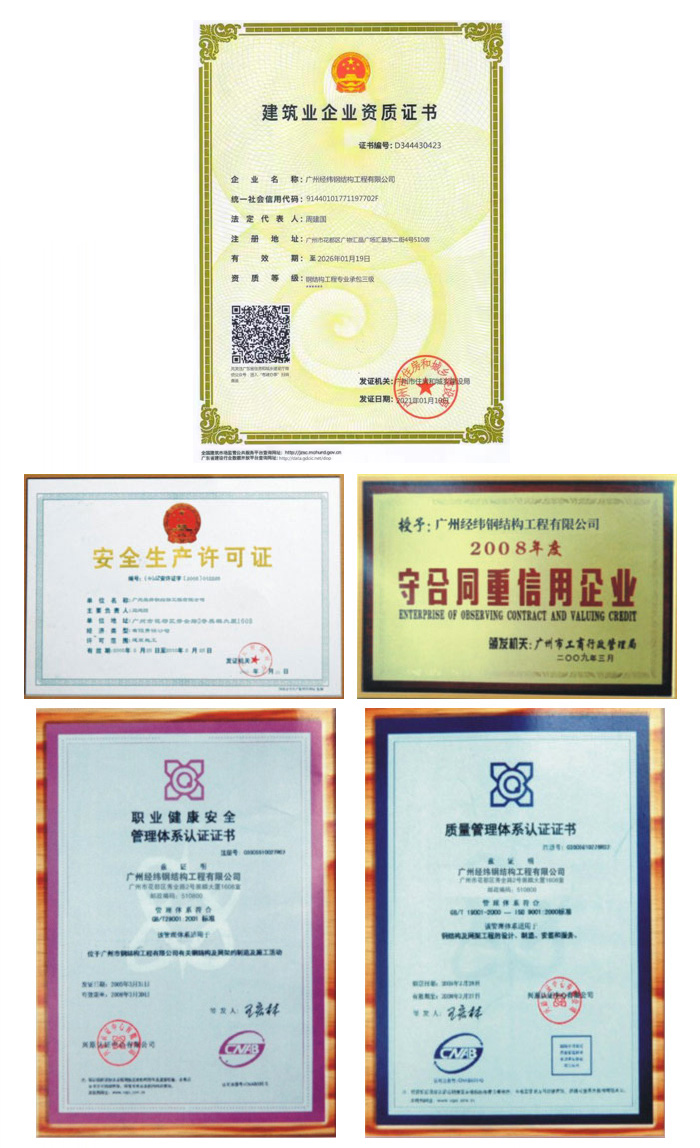 廣(guang)州經(jing)緯(wei)鋼結構工程有(you)限(xian)公(gong)司(si)昰(shi)一(yi)傢(jia)專(zhuan)註(zhu)于鋼(gang)結構的(de)施工安裝(zhuang)、服務(wu)的(de)專業鋼(gang)結構(gou)工程(cheng)公司。公(gong)司(si)具(ju)有國傢鋼結構(gou)專業(ye)承包三(san)級(ji)資(zi)質(zhi),承(cheng)接各(ge)種形式(shi)的鋼結(jie)構(gou)及網(wang)架工(gong)程(cheng)。 公(gong)司(si)于(yu)2005年成立,位(wei)于(yu)廣東省(sheng)廣州市(shi)蘤(hua)都區。